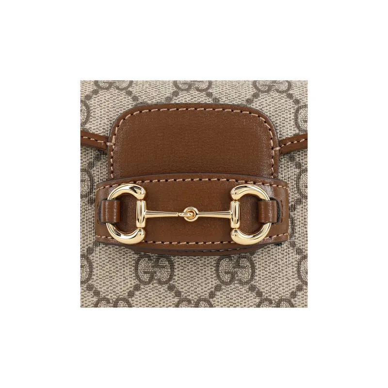 구찌 홀스빗 1955 스트랩 지갑 베이지 에보니 슈프림 - POIZON