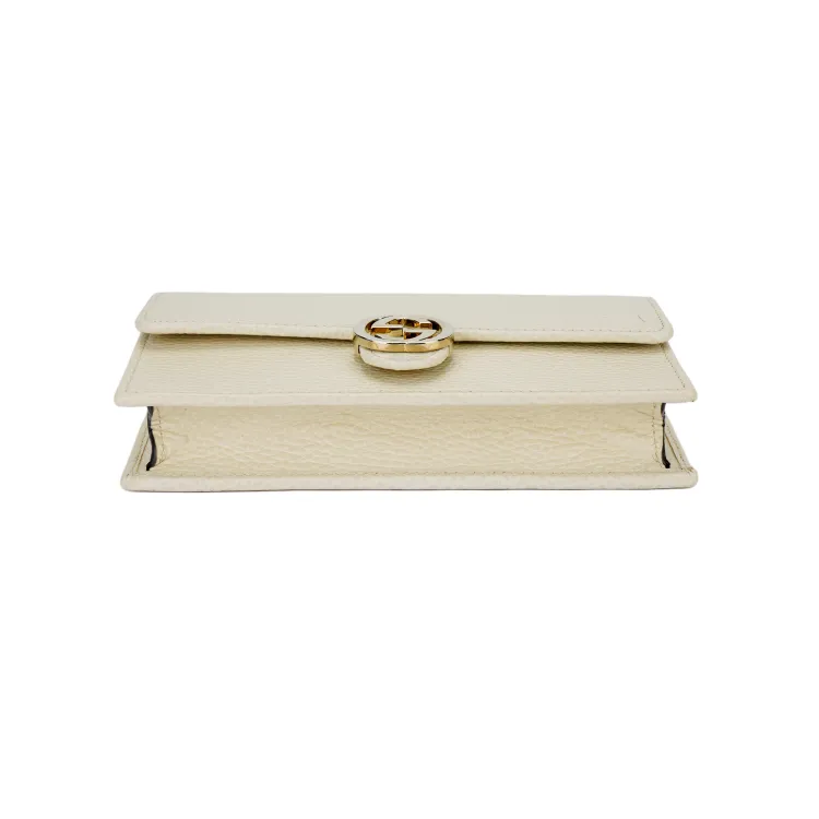 구찌 Gg 인터로킹 체인 스트랩 월렛 아이보리
