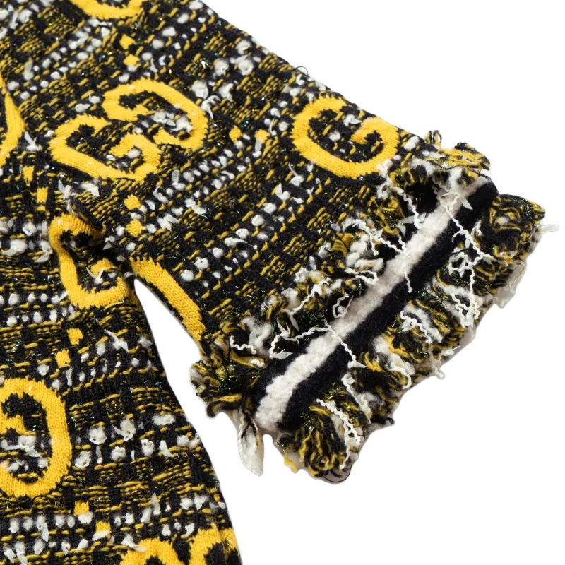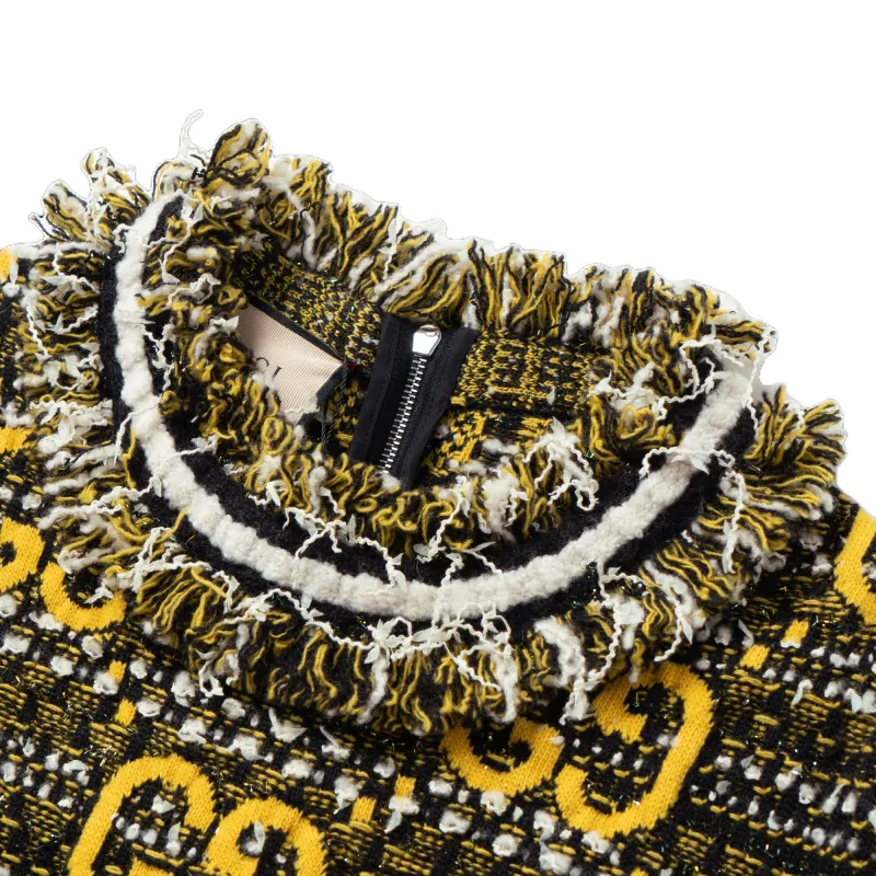 (W) 구찌 울 모헤어 Gg 드레스 블랙 아이보리 옐로우