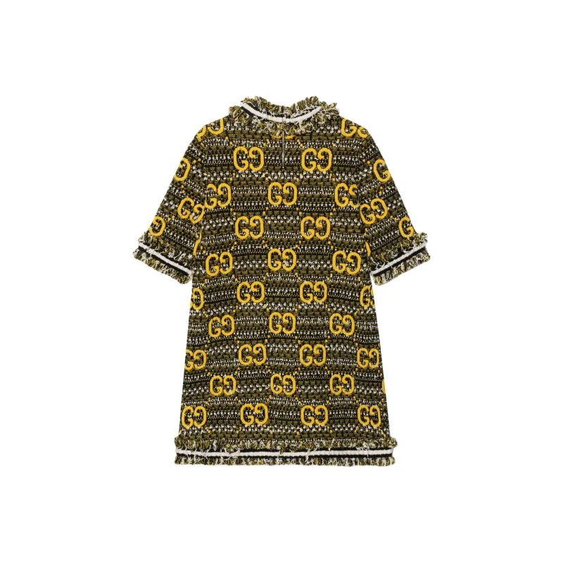 (W) 구찌 울 모헤어 Gg 드레스 블랙 아이보리 옐로우 - POIZON