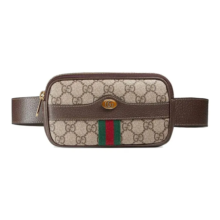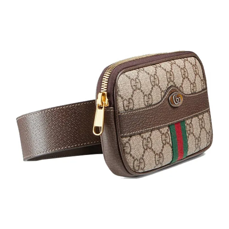 구찌 오피디아 캔버스+가죽 가로 십자 핸드폰 파우치, 원 숄더 크로스백, 슬링 백, 패니 팩 레귤러 여성 에보니/브라운 - POIZON