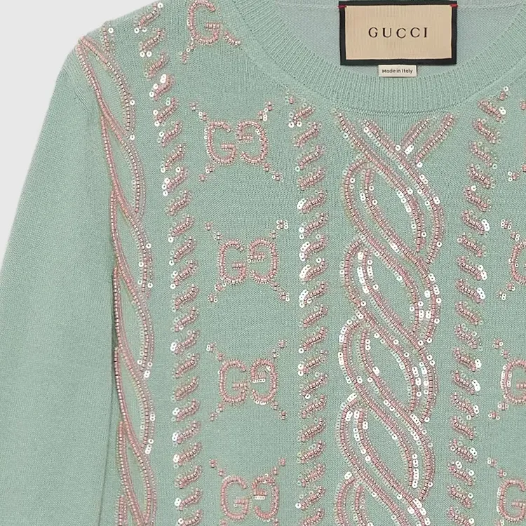 (W) 구찌 캐시미어 울 점퍼 자수 라이트 블루 - POIZON