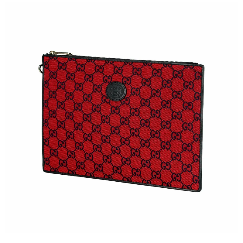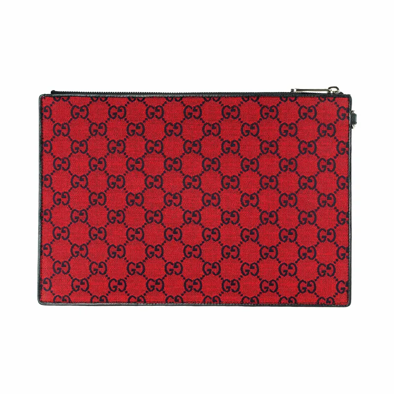 구찌 발렌타인데이 컬렉션 캔버스+가죽 캔버스 백 클러치 남녀공용 레드/블루 - POIZON