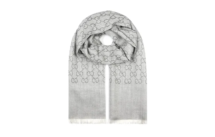 (W) 구찌 Gg 울 실크 자카드 스카프 그레이 - POIZON