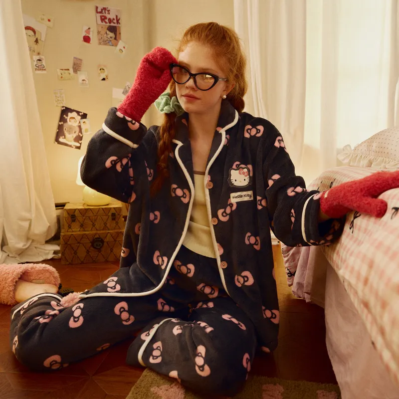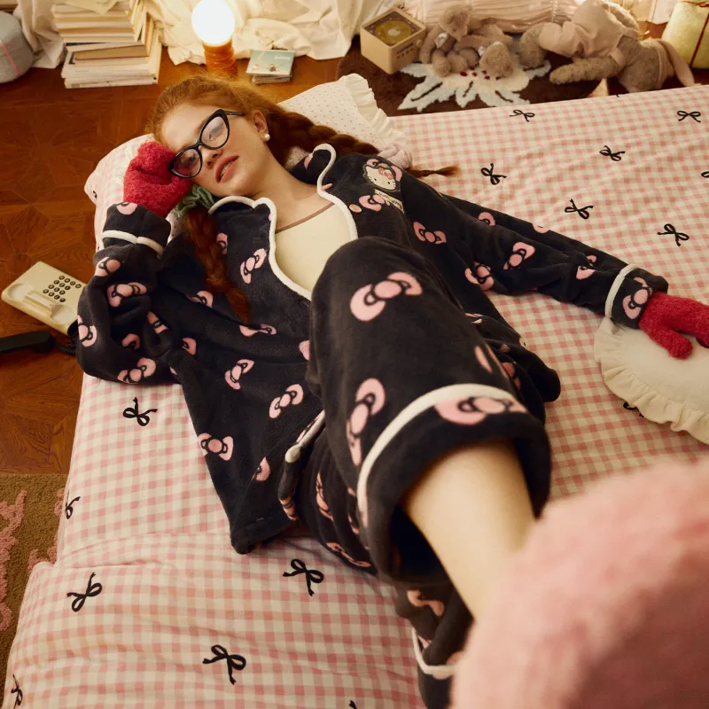 GUKOO 헬로키티 트러플 블랙 여성 파자마 세트 - POIZON