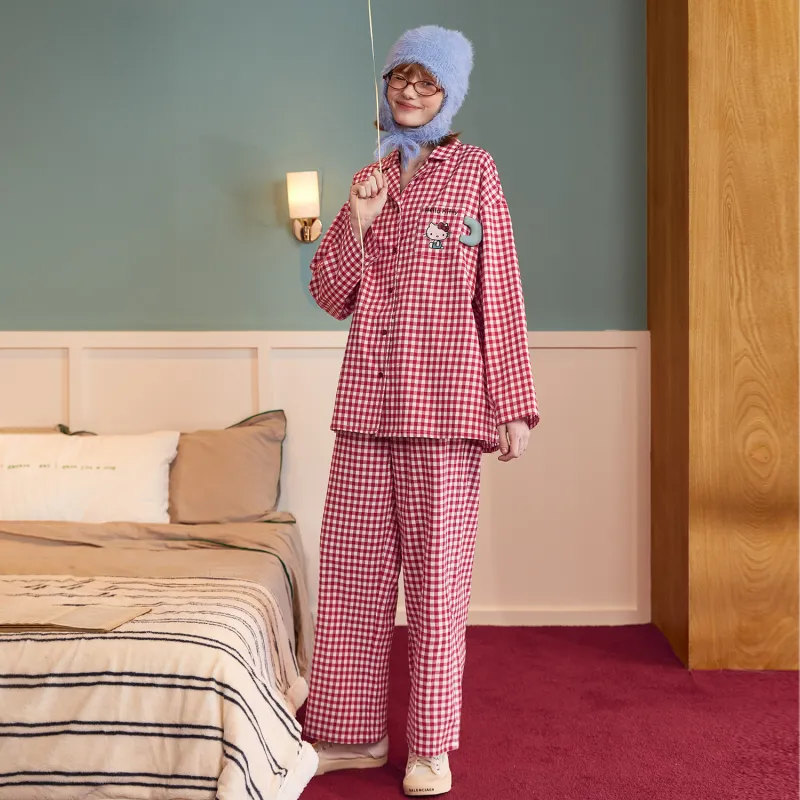 GUKOO 산리오 시리즈 마젠타 여성 파자마 세트
