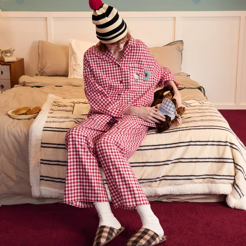 GUKOO 산리오 시리즈 마젠타 여성 파자마 세트 - POIZON