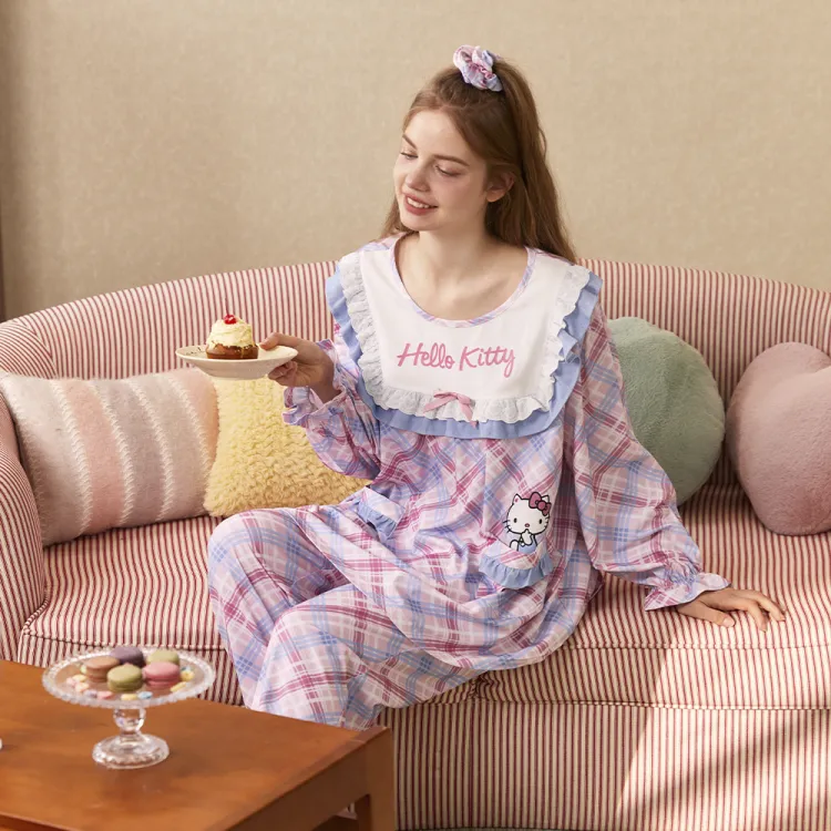 GUKOO 산리오 시리즈 블루 핑크 여성 파자마 세트