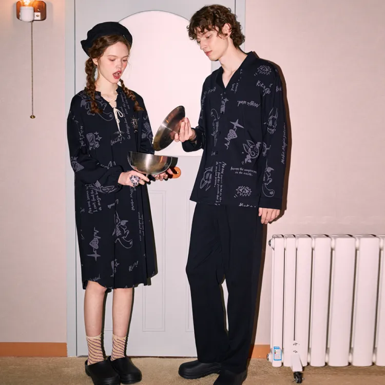 GUKOO 옵시디언 블랙 여성 나이트 가운 - POIZON