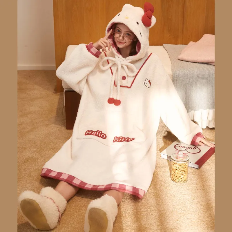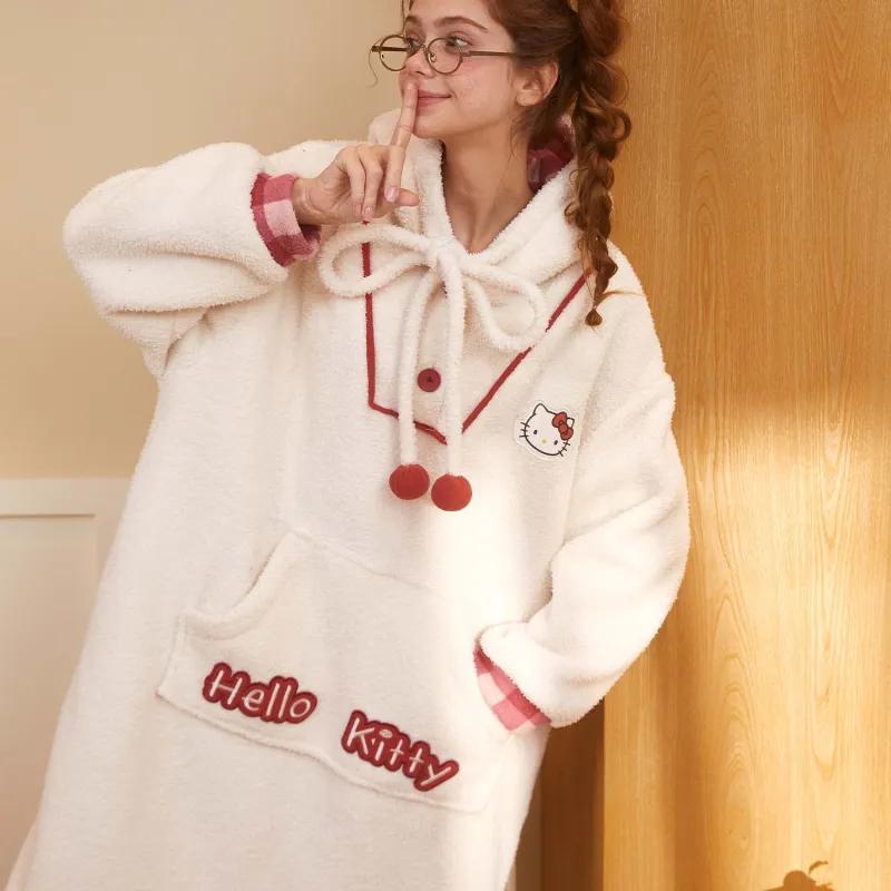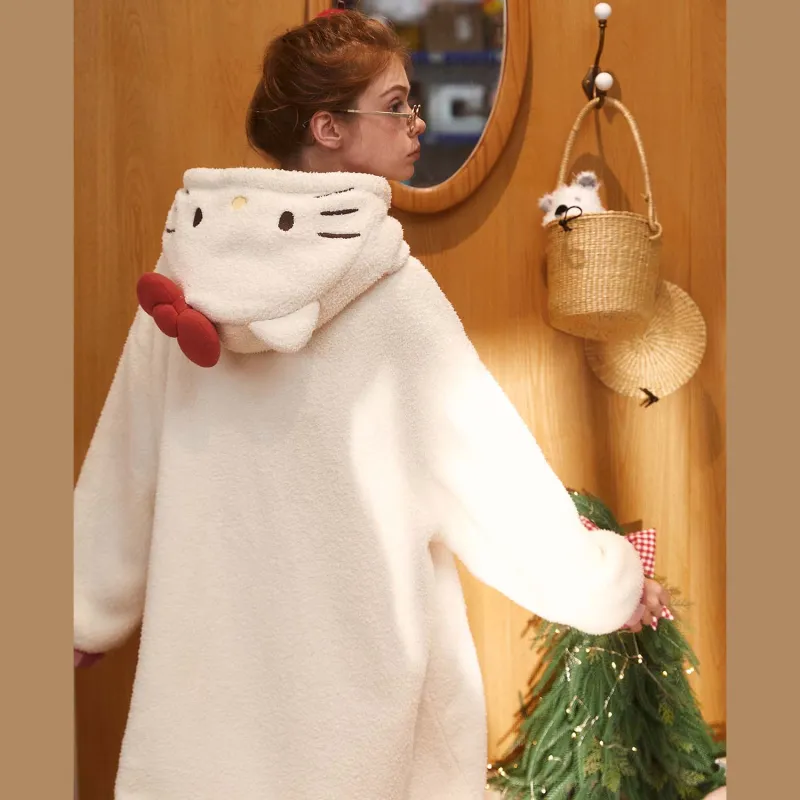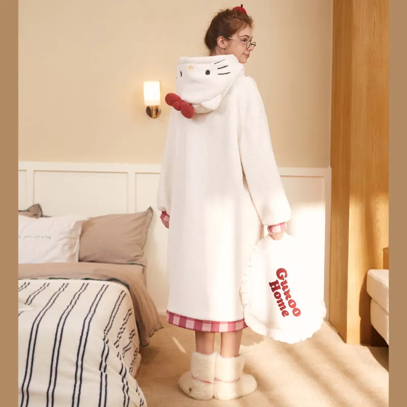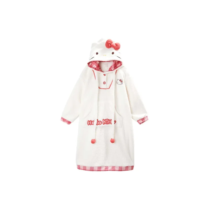 GUKOO x 산리오 헬로키티 나이트 가운 여성 아이보리