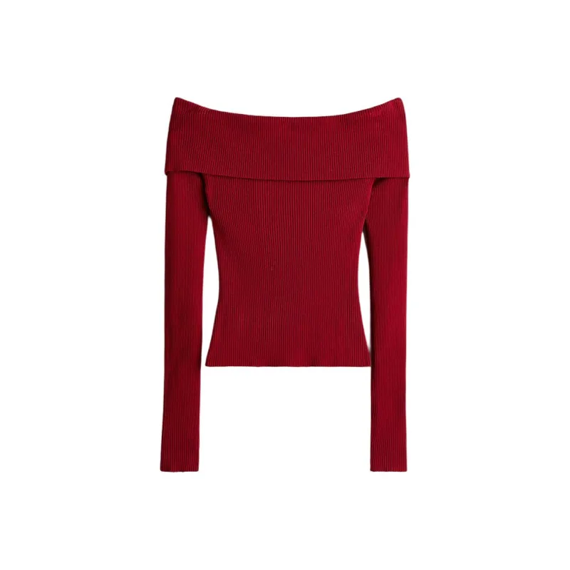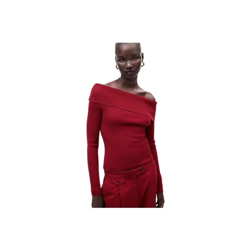H&M 딥 레드 여성 니트웨어 - POIZON