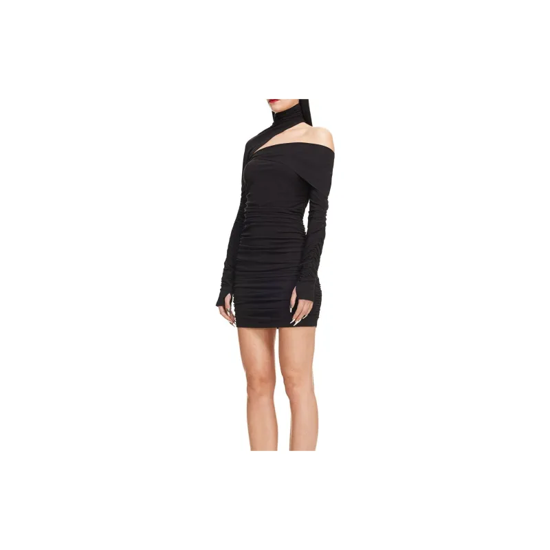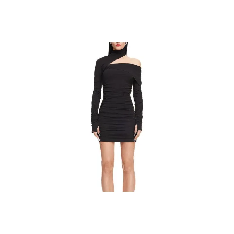 (W) 에이치앤엠 x 뮈글러 개더드 원숄더 미니 드레스 블랙 - POIZON