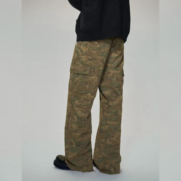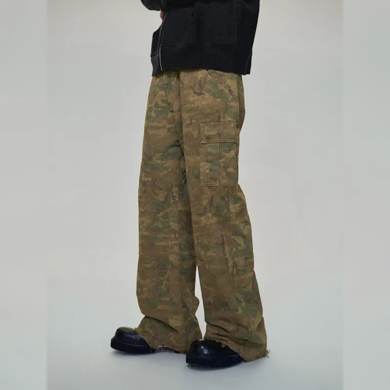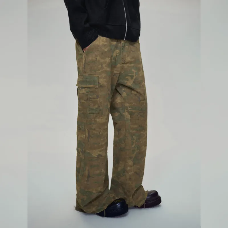 Haonanhuang 옐로우 그린 카모플라주 남녀공용 카고 바지 - POIZON