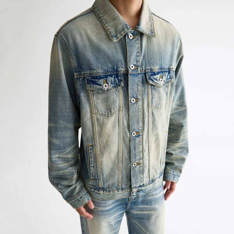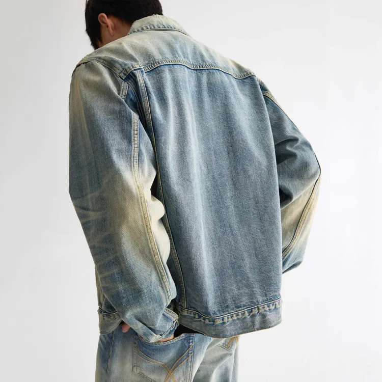 Haonanhuang 원료 인디고 남녀공용 데님 자켓
