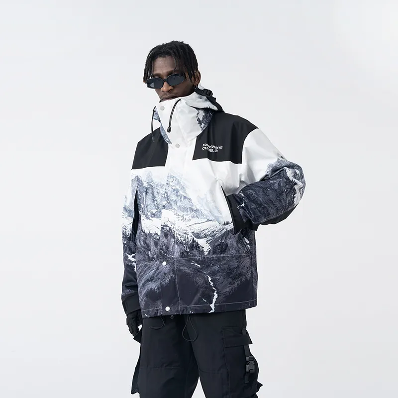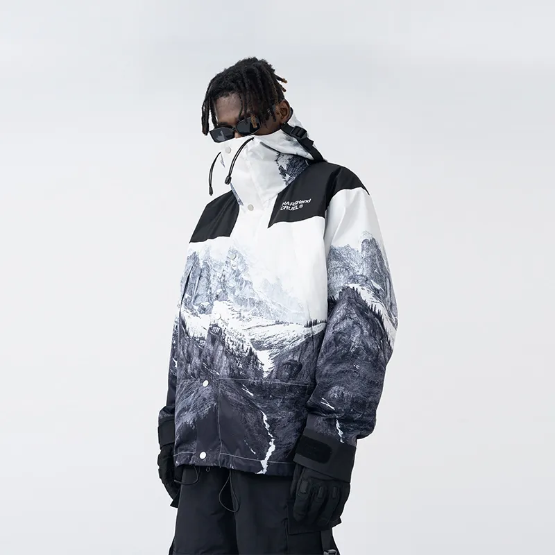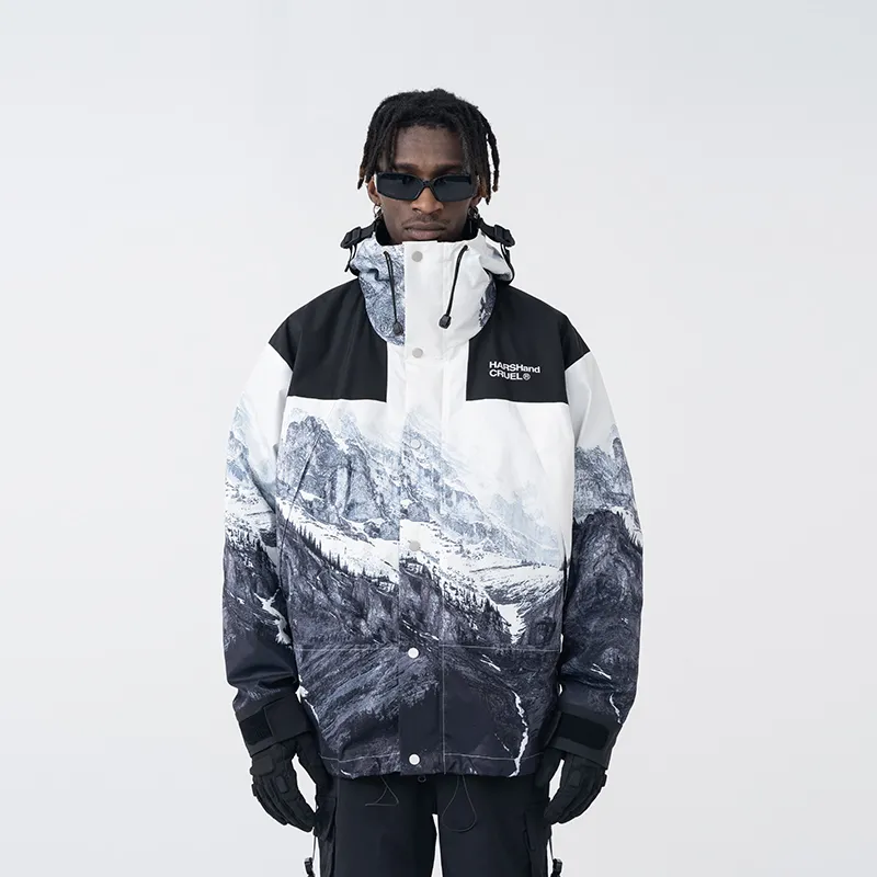 HARSH and CRUEL 스노우 마운틴 프린팅 남녀공용 자켓 - POIZON