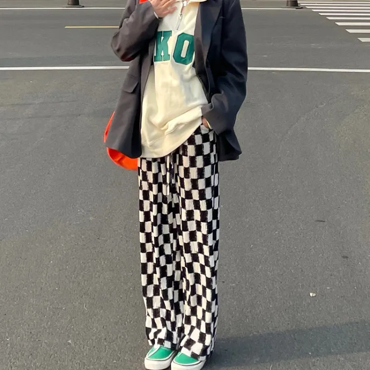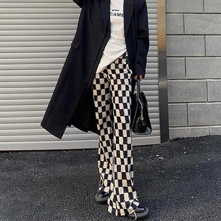 HELIPORT 캐주얼 팬츠 남녀공용 블랙 앤 화이트 라티스 - POIZON