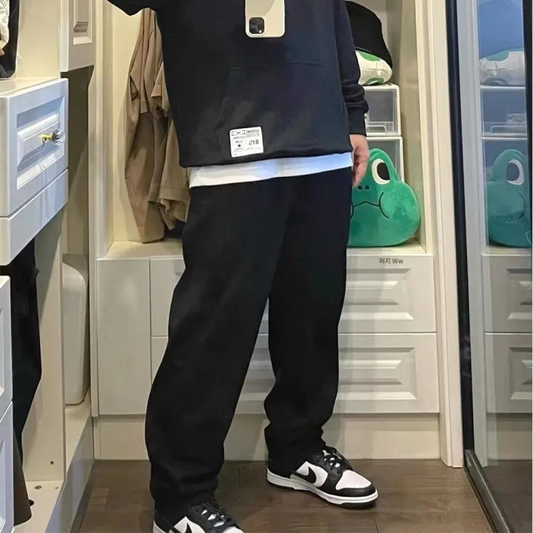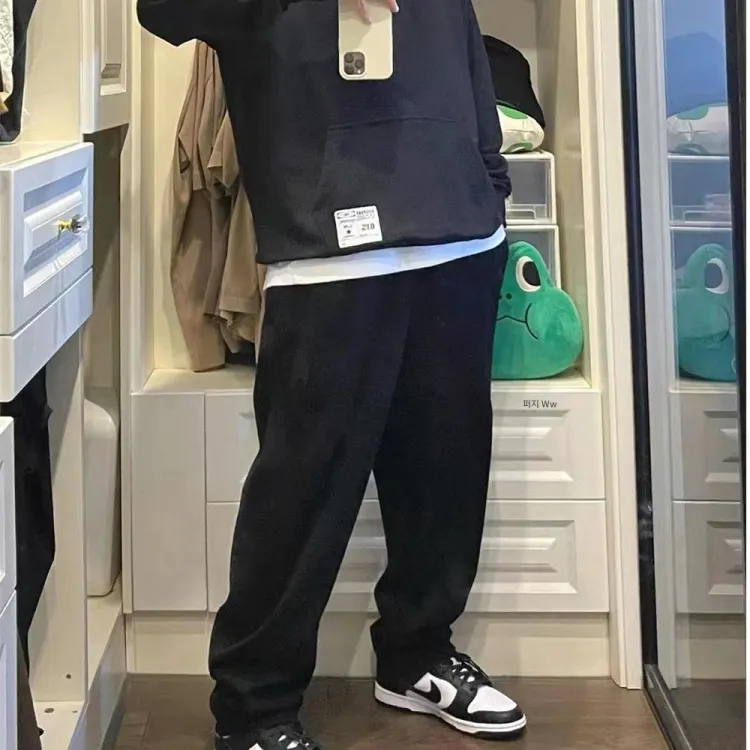 블랙: 겉감 원단-53% 면, 47% 폴리에스터; 밑감-95% 폴리에스터, 5% 엘라스테인
