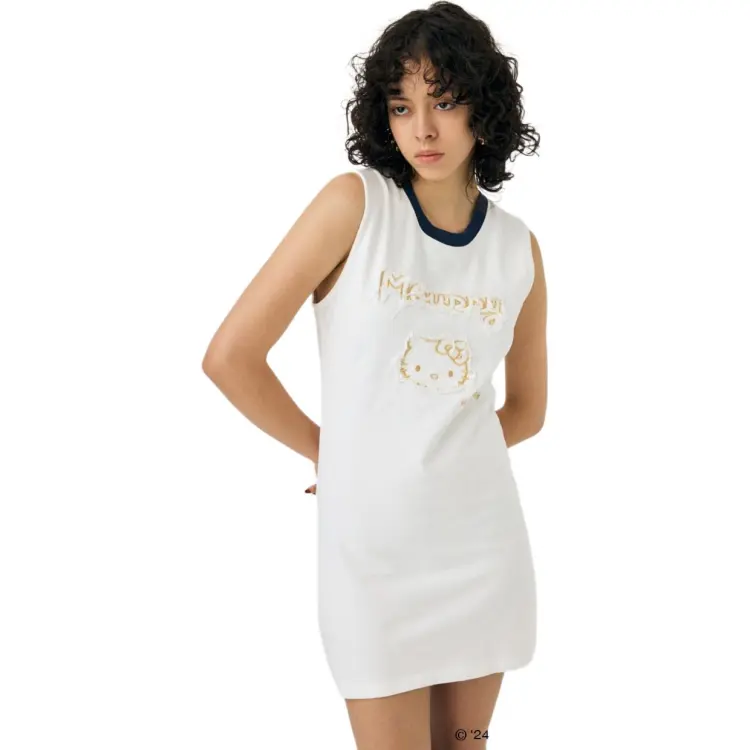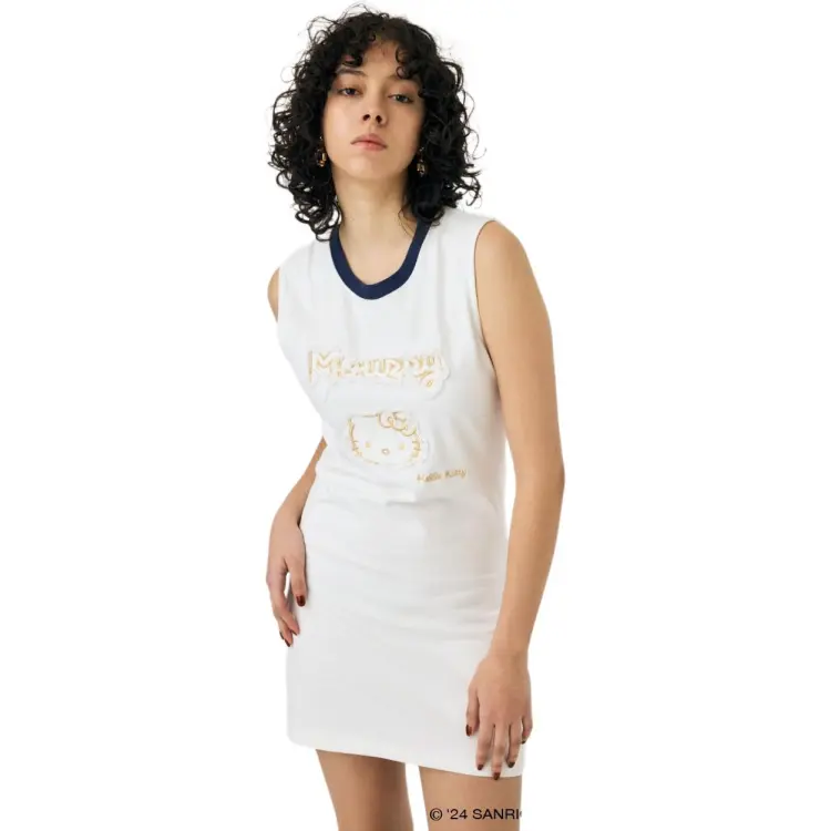 MOUSSY 헬로키티 콜라보레이션 화이트 여성 민소매 원피스