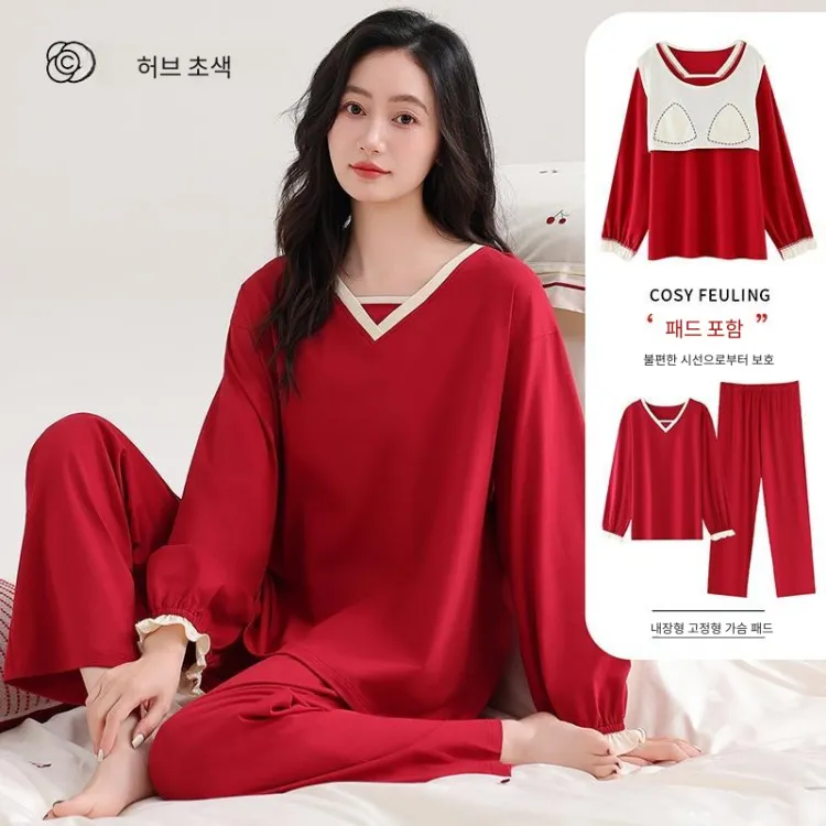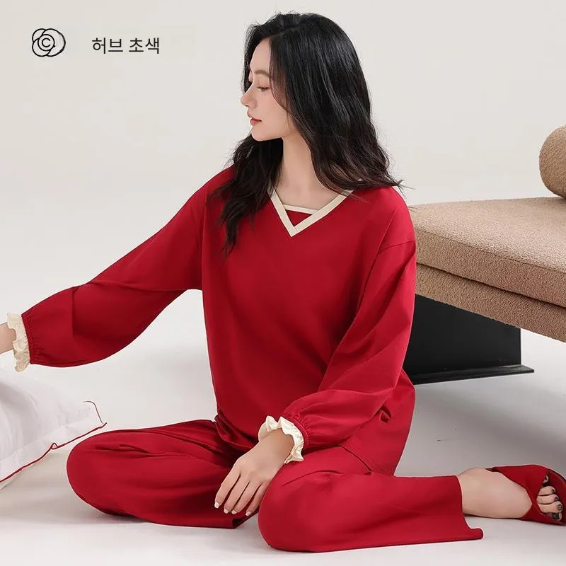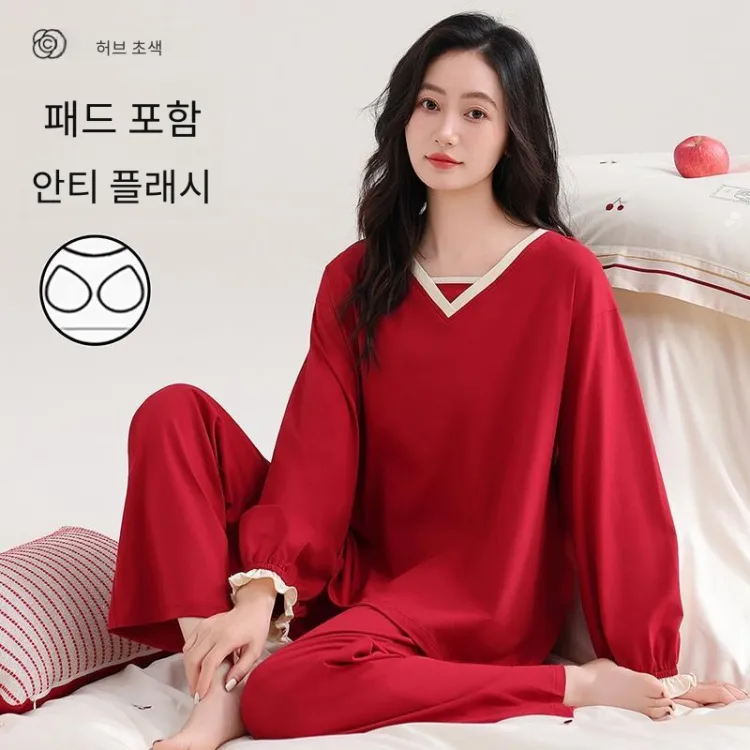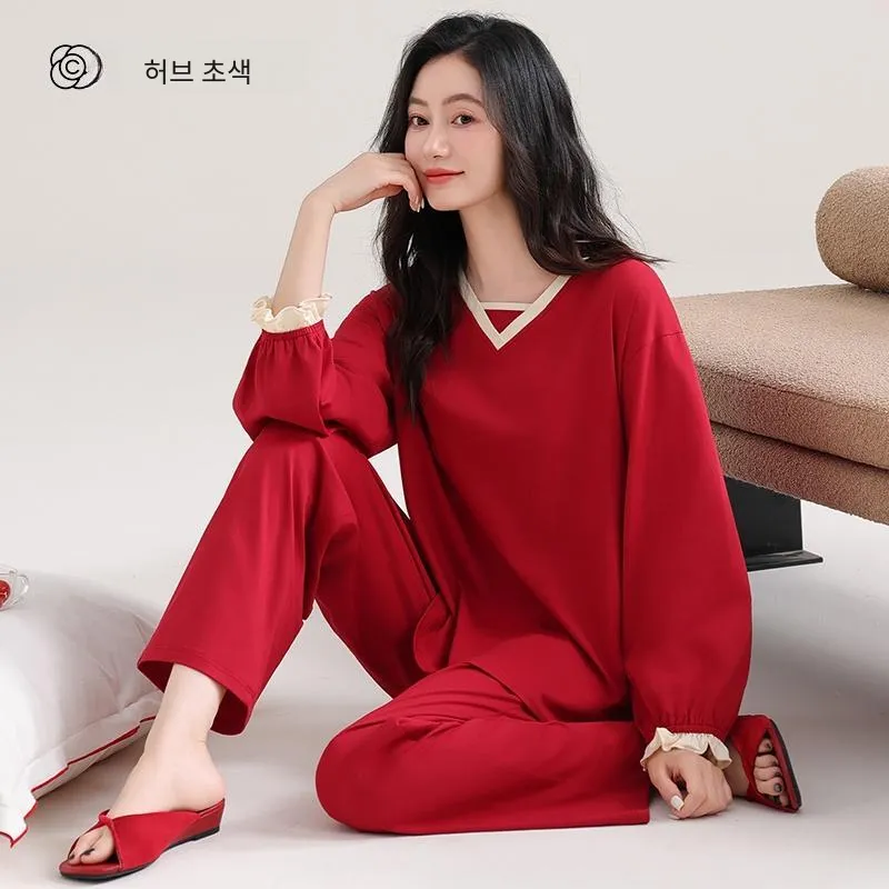 Herbal primer 레드 여성 파자마 세트 - POIZON