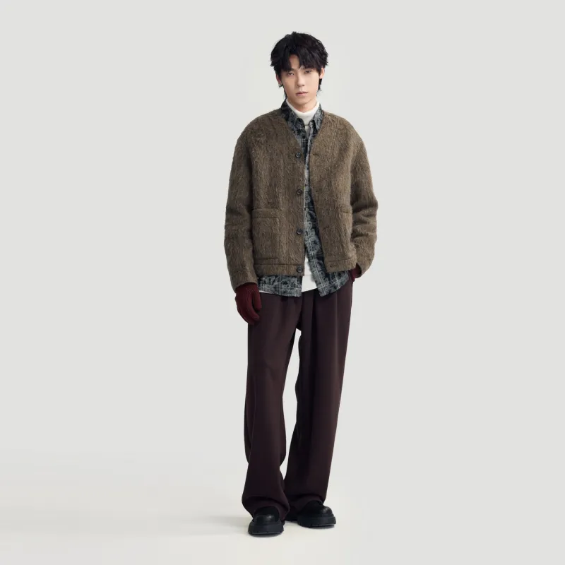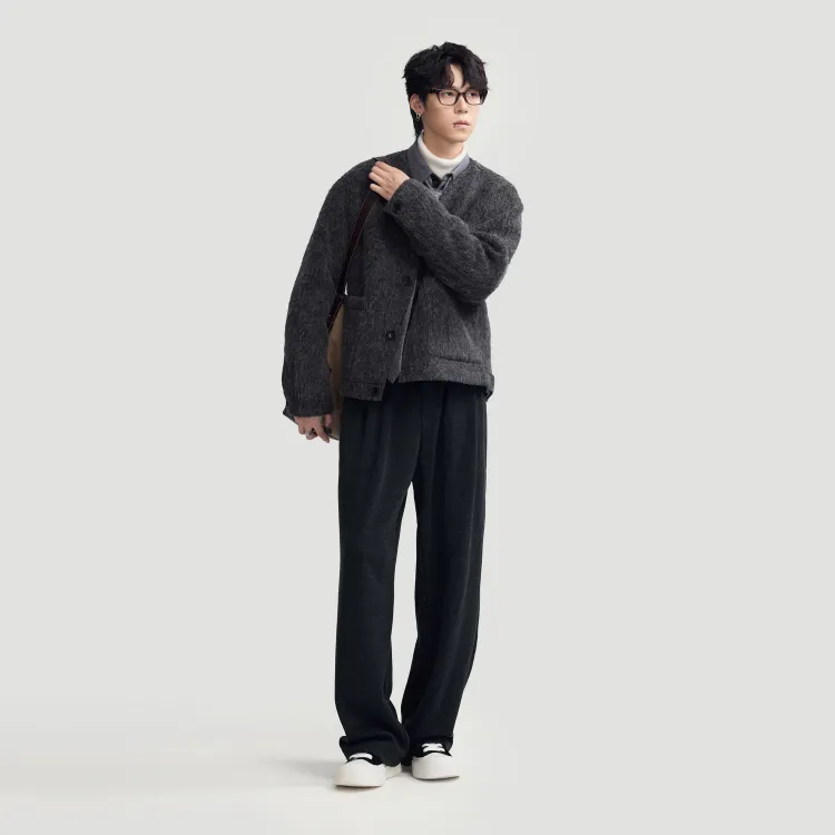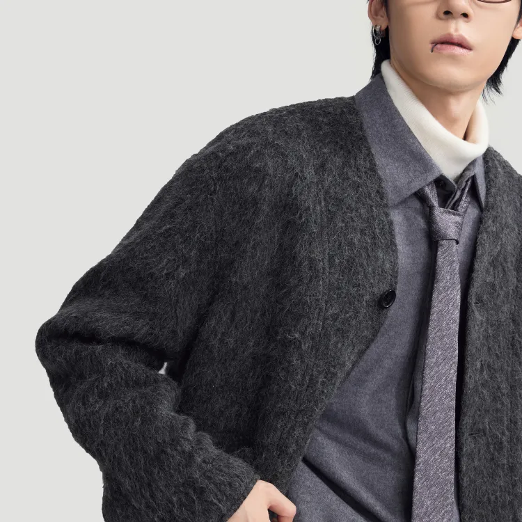 원단: 41% 양모, 29.9% 폴리에스터, 18% 아크릴, 11.1% 알파카 울 안감: 100% 폴리에스터