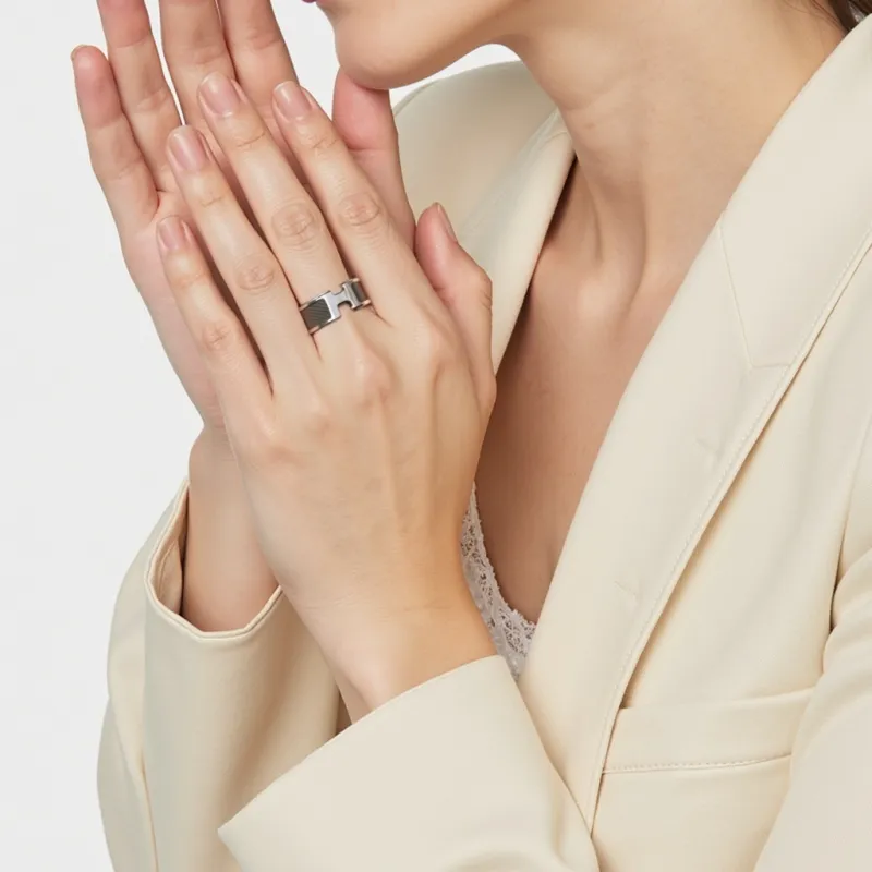 HERMES 송아지 가죽, 금속, 팔라듐 도금 금속 부품 반지 남녀공용 블랙 - POIZON