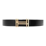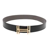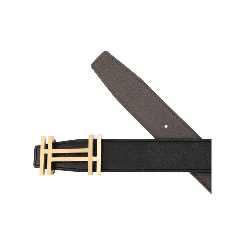 HERMES 더블 H 블록 골드 버클 토고 송아지 가죽 양면 가죽 벨트 남성 블랙/틴 그레이 너비 3.2cm - POIZON