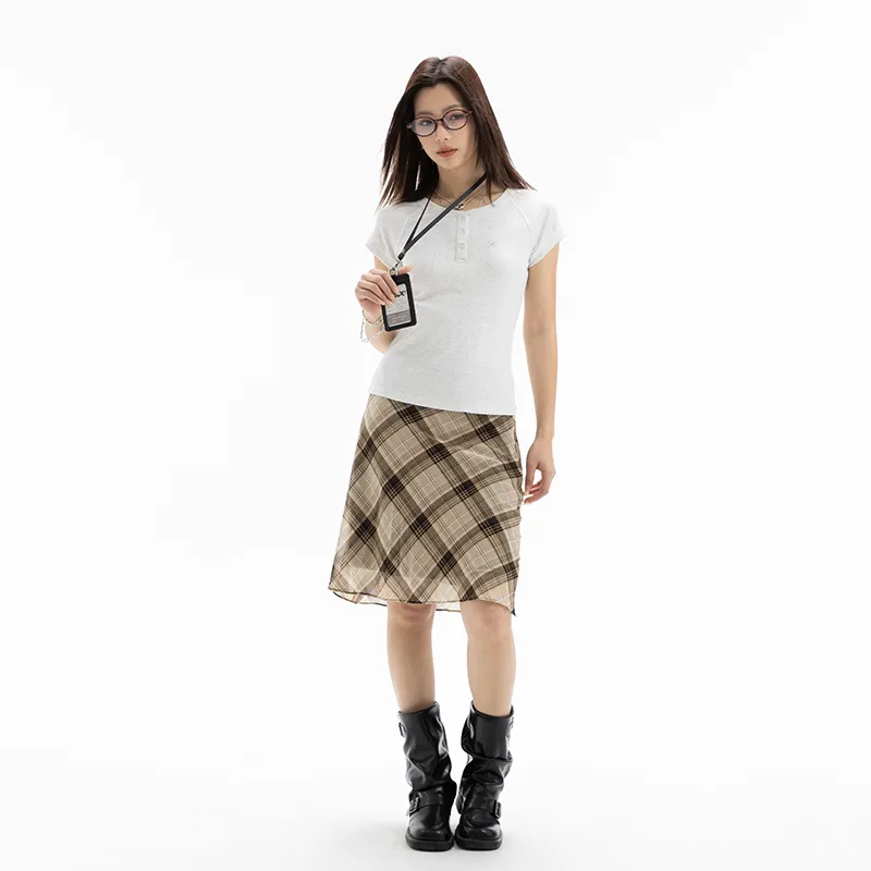HEYABC 라이트 브라운 여성 캐주얼 롱 스커트 - POIZON