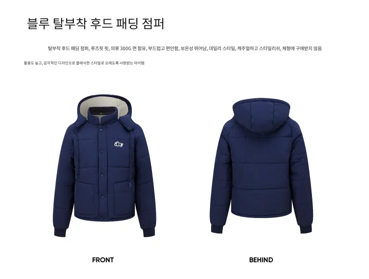 HEYABC 네이비 블루 남녀공용 패딩 점퍼