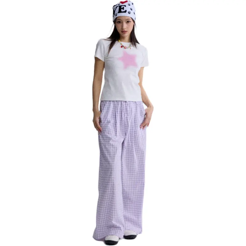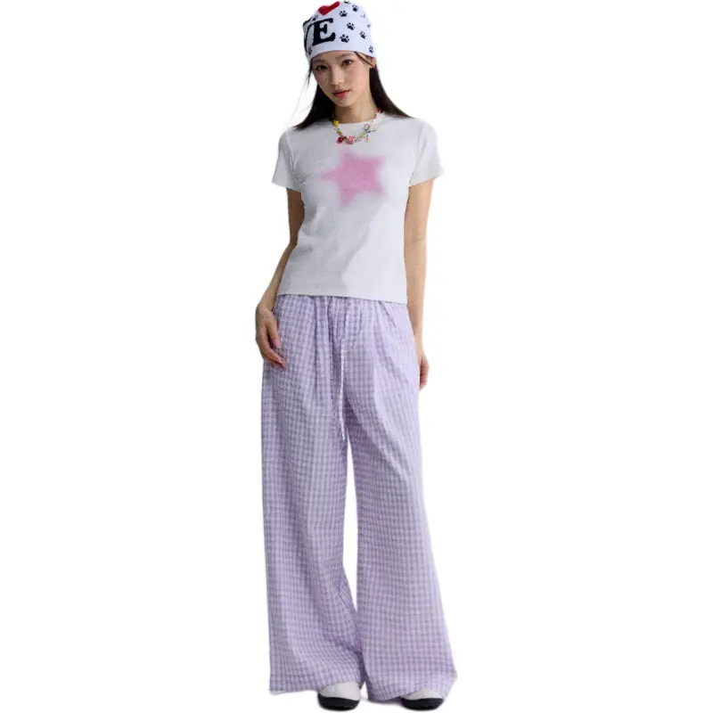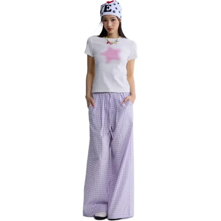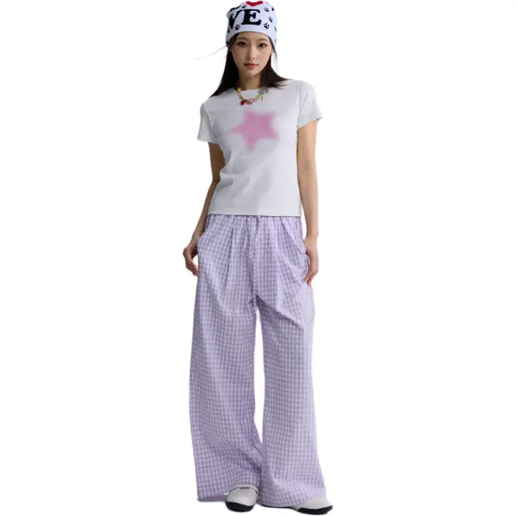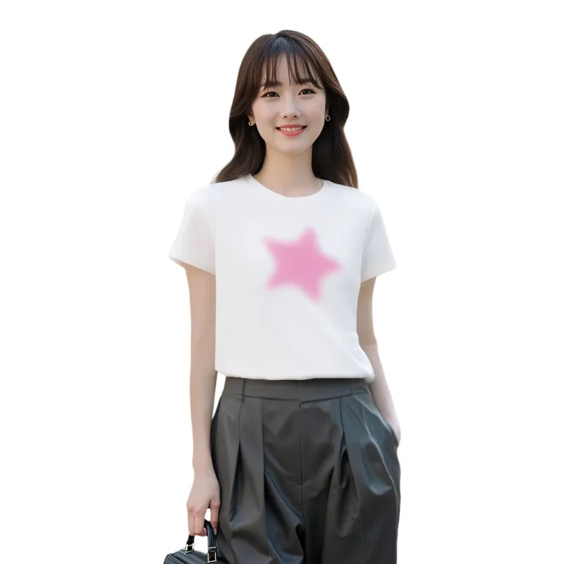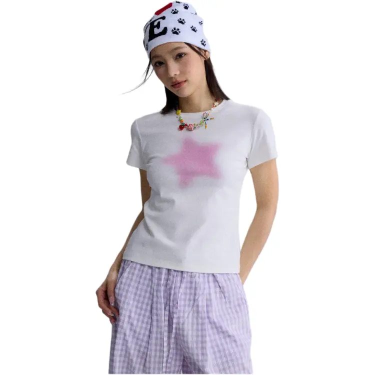 HEYABC 화이트 핑크 스타 여성 티셔츠 - POIZON