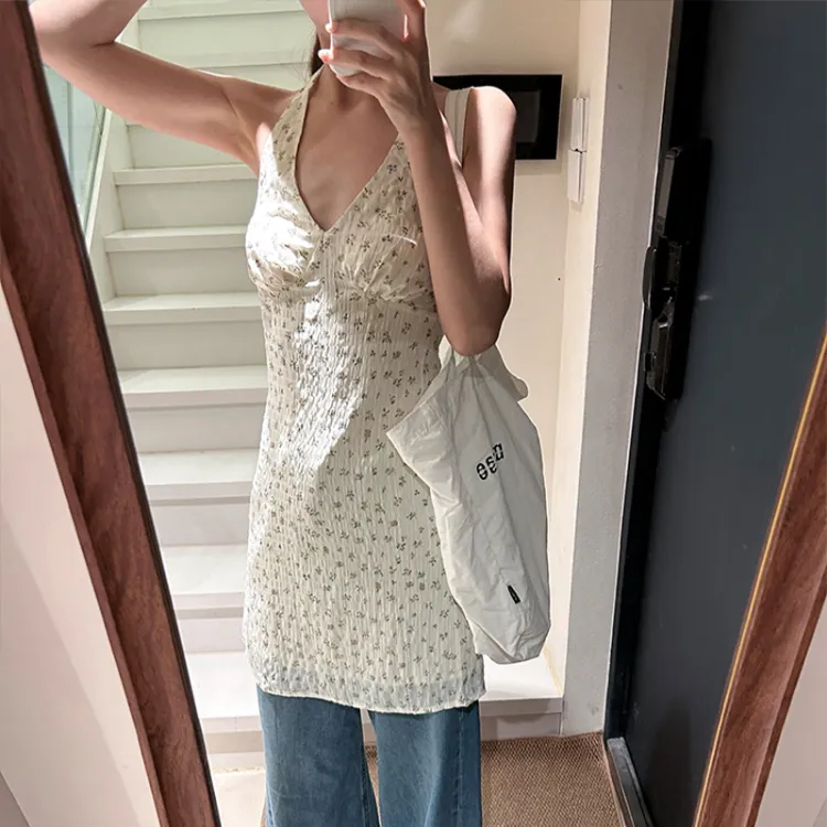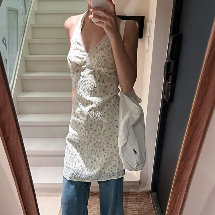 HEYABC 아이보리 화이트 홀터넥 드레스 여성 민소매 원피스 - POIZON