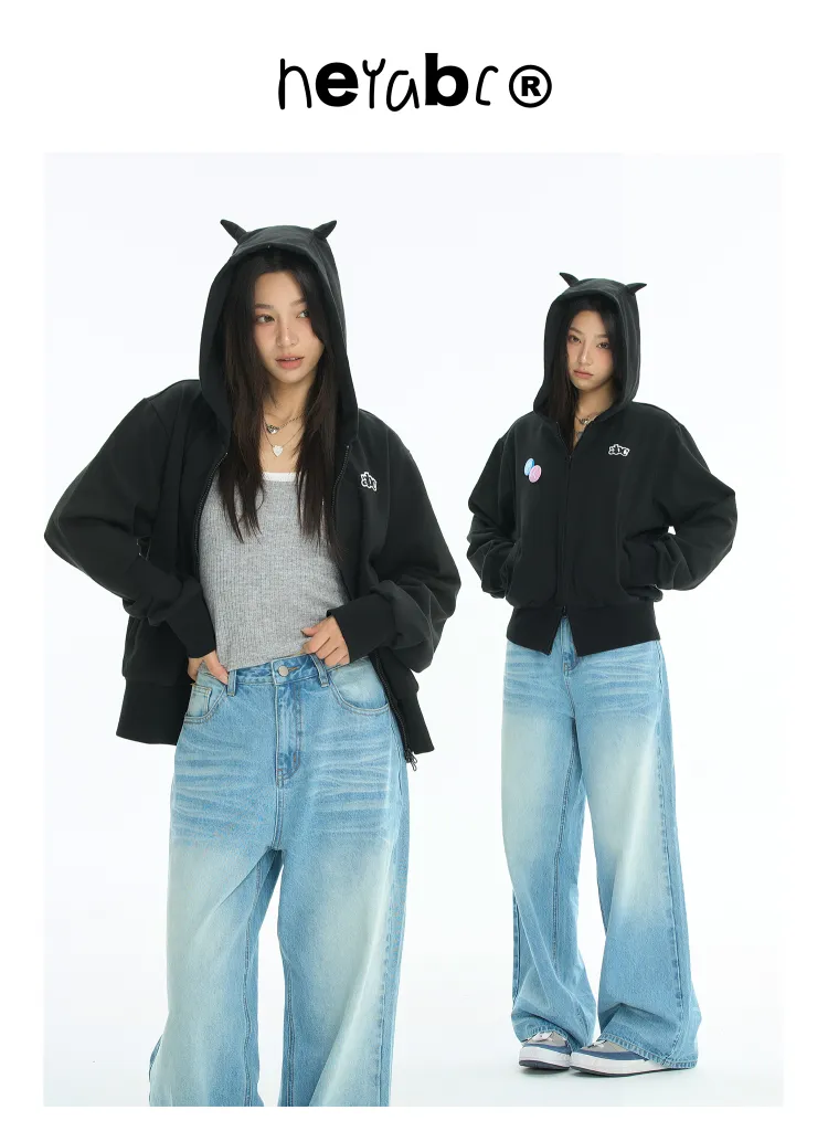 HEYABC 블랙 여성 맨투맨 - POIZON