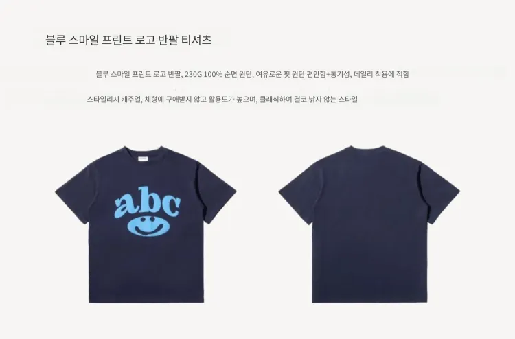 HEYABC 네이비 블루 블루 스마일 프린트 여성 티셔츠 - POIZON
