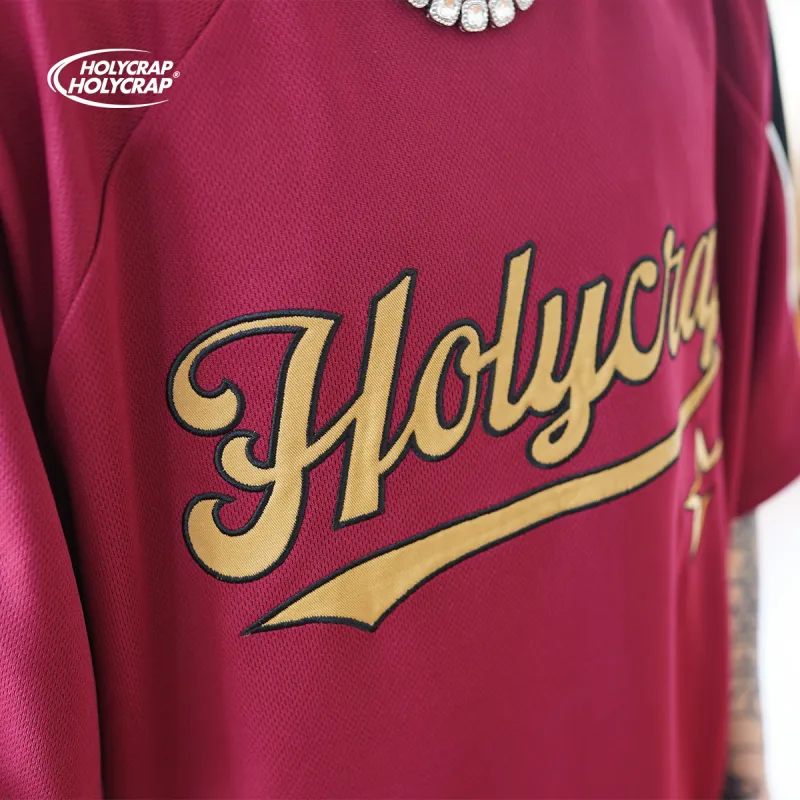 Holycrap 버건디 남녀공용 티셔츠 - POIZON