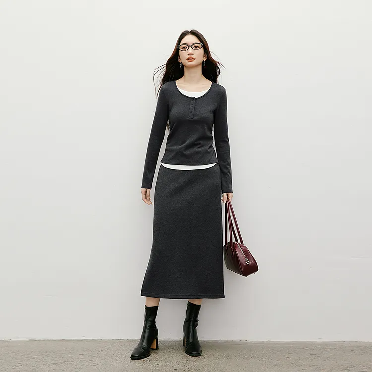 Hopeshow 여성 캐주얼 롱 스커트 - POIZON