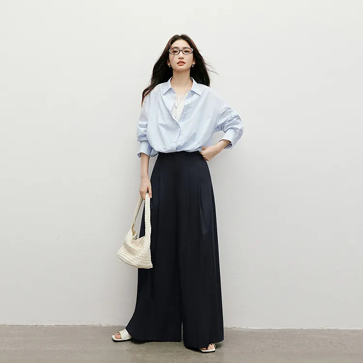 Hopeshow 딥 네이비 블루 443 여성 캐주얼 팬츠 - POIZON