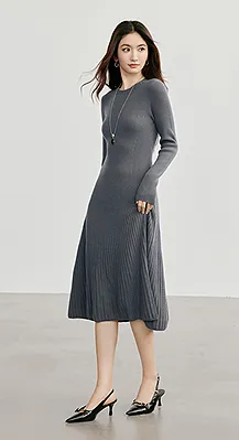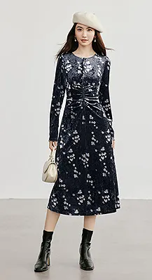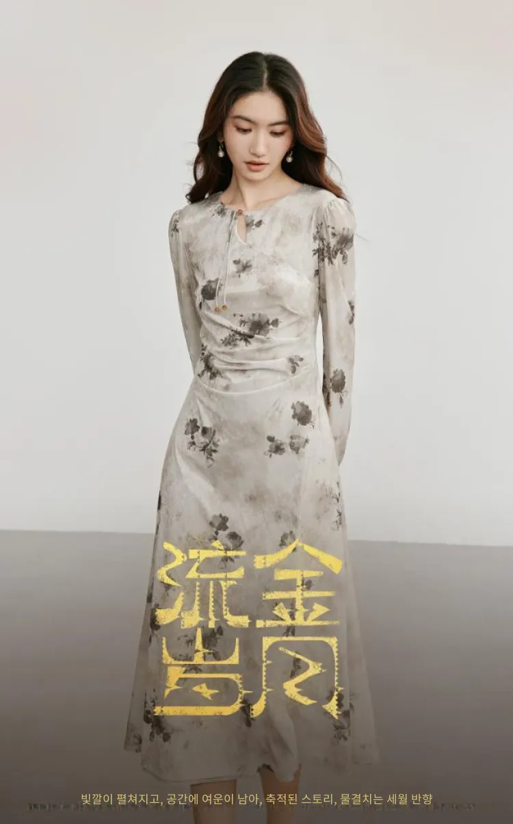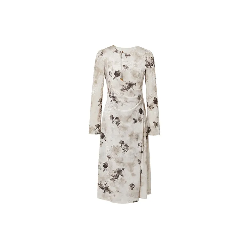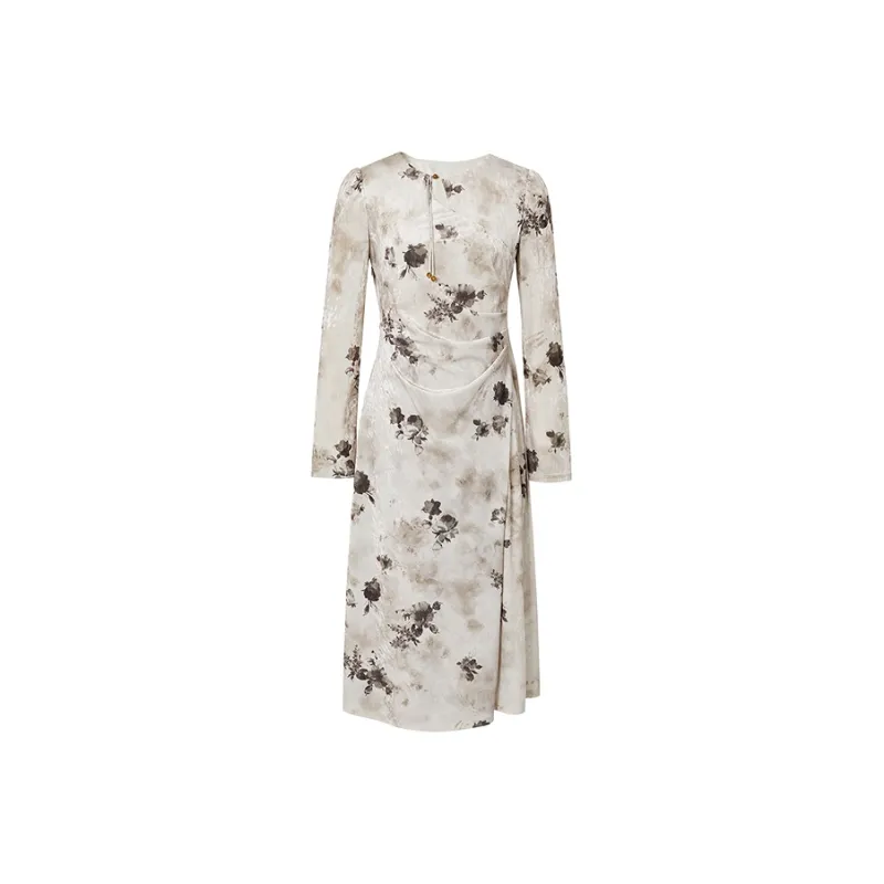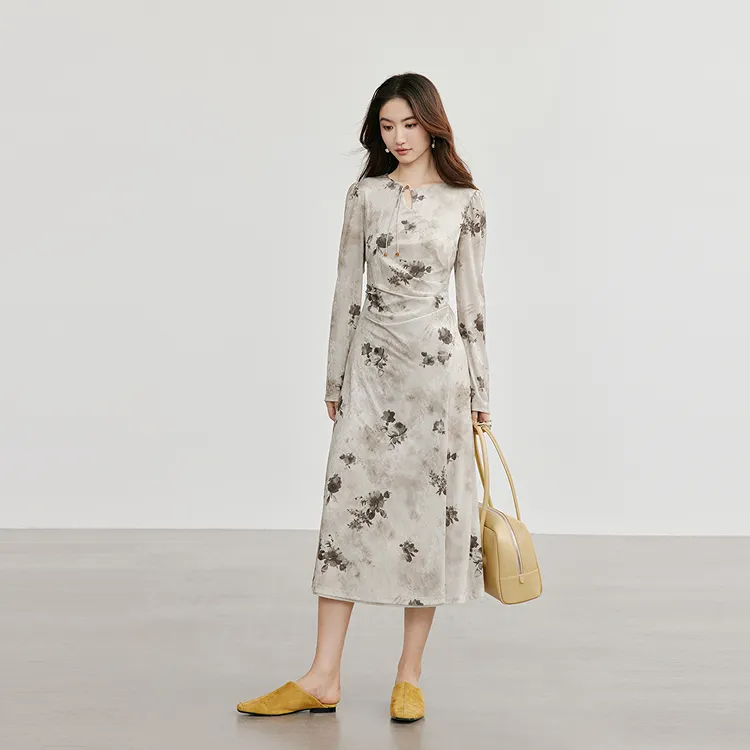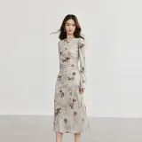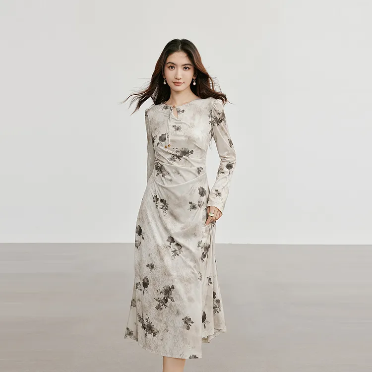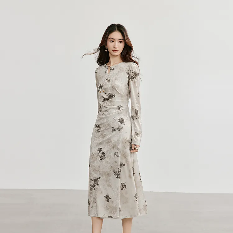 Hopeshow 커피 플로럴 622 여성 긴팔 원피스 - POIZON