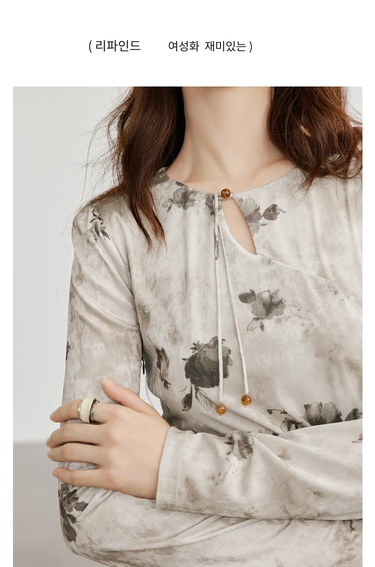Hopeshow 커피 플로럴 622 여성 긴팔 원피스