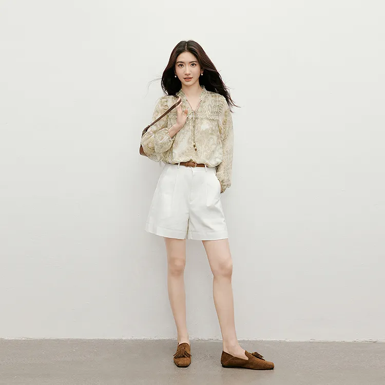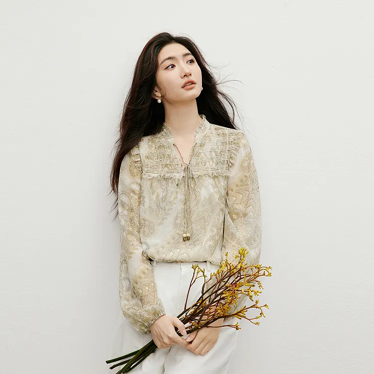 Hopeshow 올리브 그린 꽃무늬 여성 셔츠 - POIZON