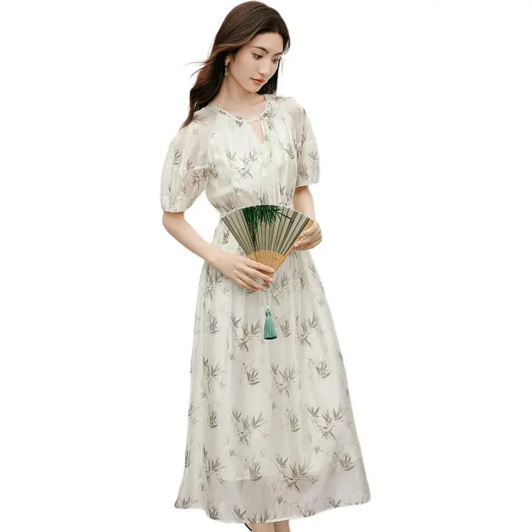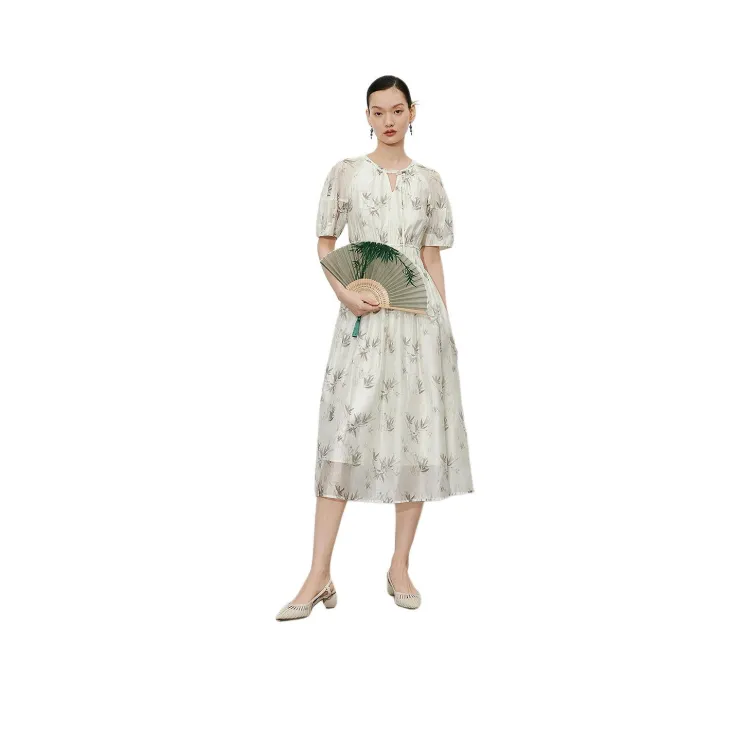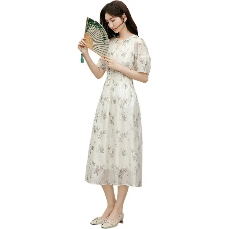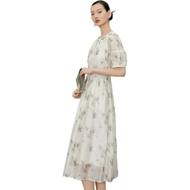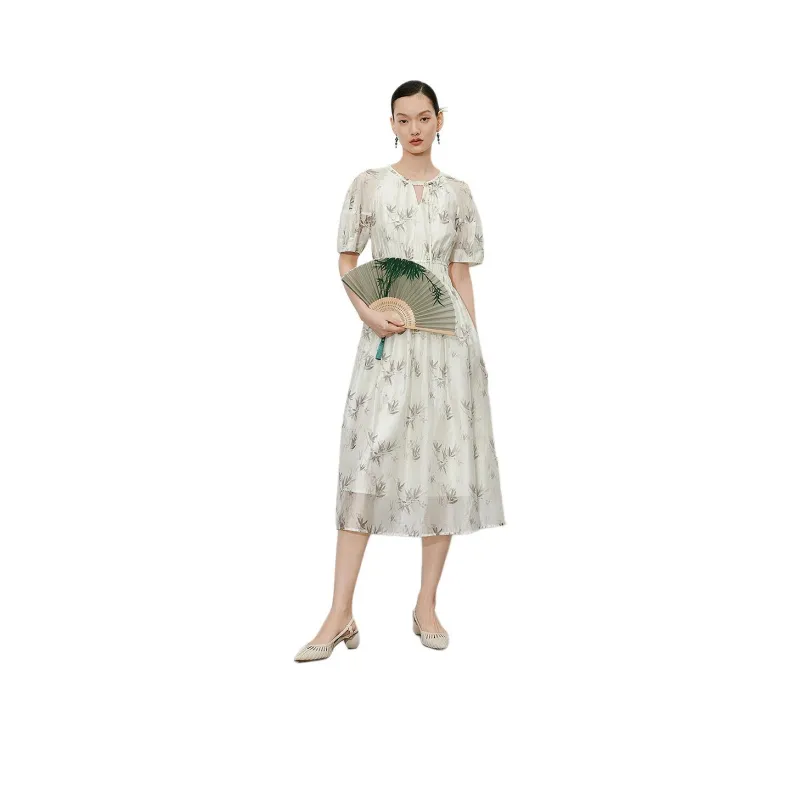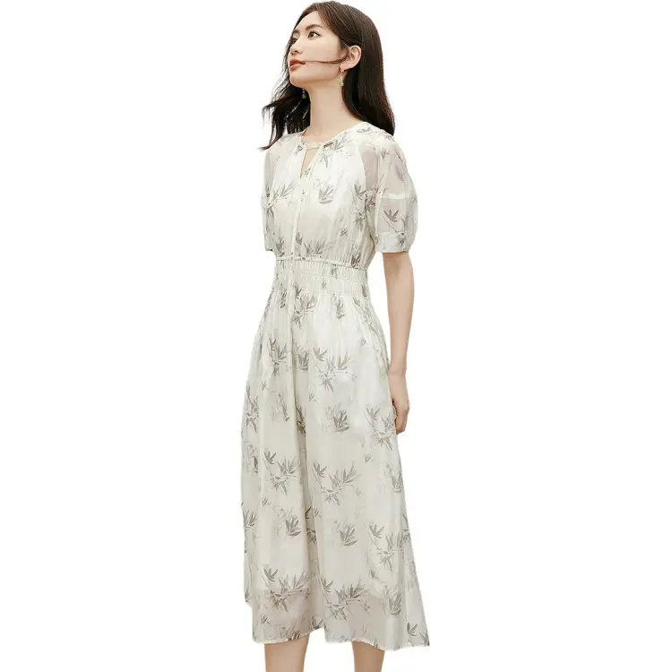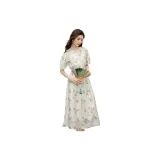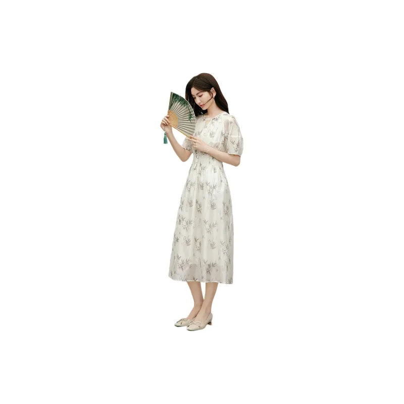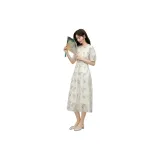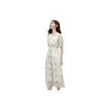Hopeshow 화이트 + 플로랄 여성 반팔 원피스 - POIZON