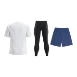 상의: 86.6% 폴리에스터, 13.4% 스판덱스 하의: 겉감 85% 폴리에스터, 15% 스판덱스; 이너 58% 폴리아미드, 42% 스판덱스