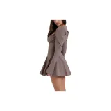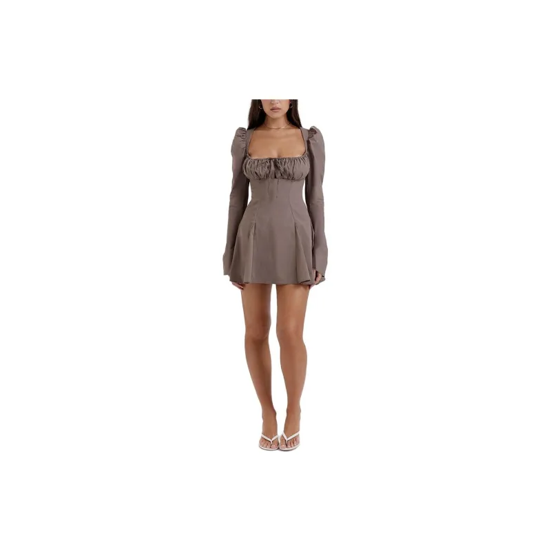 HOUSE of CB SS23 Carlina 컬렉션 긴팔 원피스 여성 모카 - POIZON