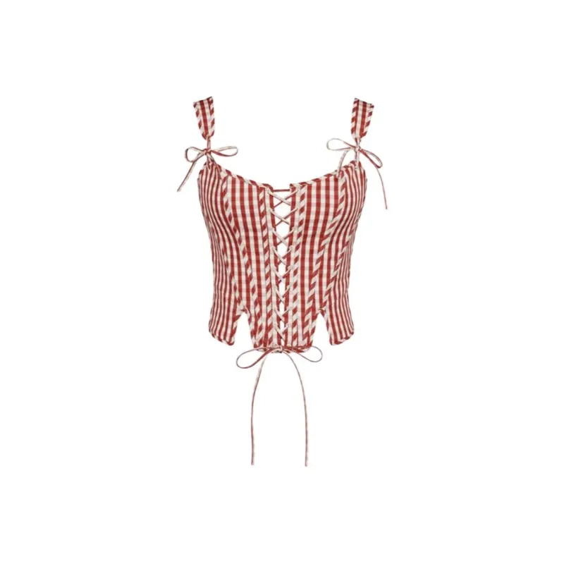 HOUSE of CB 레드 체크 여성 민소매 - POIZON