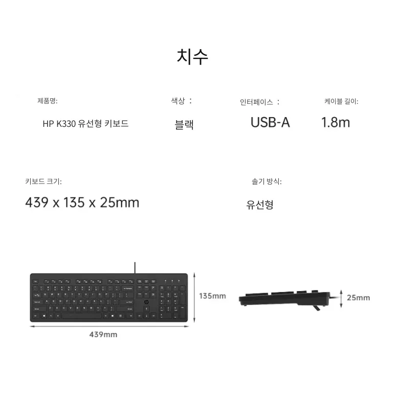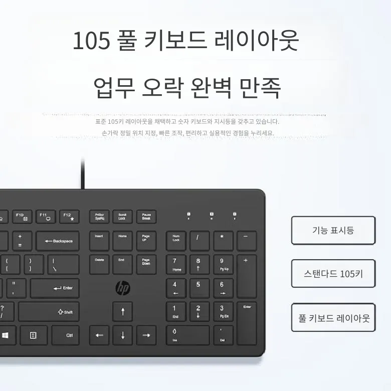HP HUIPU K330 유선형 연결 105키 초콜릿 키캡, 조절 가능 스탠드 키보드