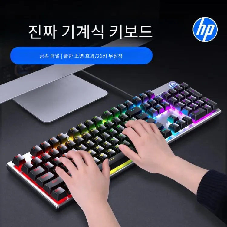 HP HUIPU K500Y 유선형 연결 104키 정품 기계식 느낌, 게이밍 오피스 키보드 - POIZON