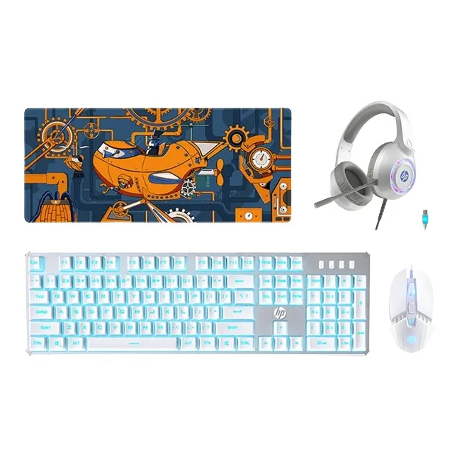 HP HUIPU GK100+M1 기계식 E스포츠 마우스 + 게이밍 이어폰, 20가지 색상 Breath Lighting, 무 충돌 풀 키보드, E스포츠 게이밍 글로우 키보드 & 마우스 세트
