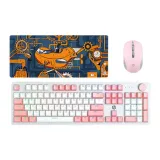 HP HUIPU K10G 블루 액시스 브라운 신발 목 104키 에너제틱 핑크 기계식 키보드 + 노와이어 마우스, RGB 조명 효과, 기계식 스위치, 탈부착 가능 키캡 키보드 & 마우스 세트