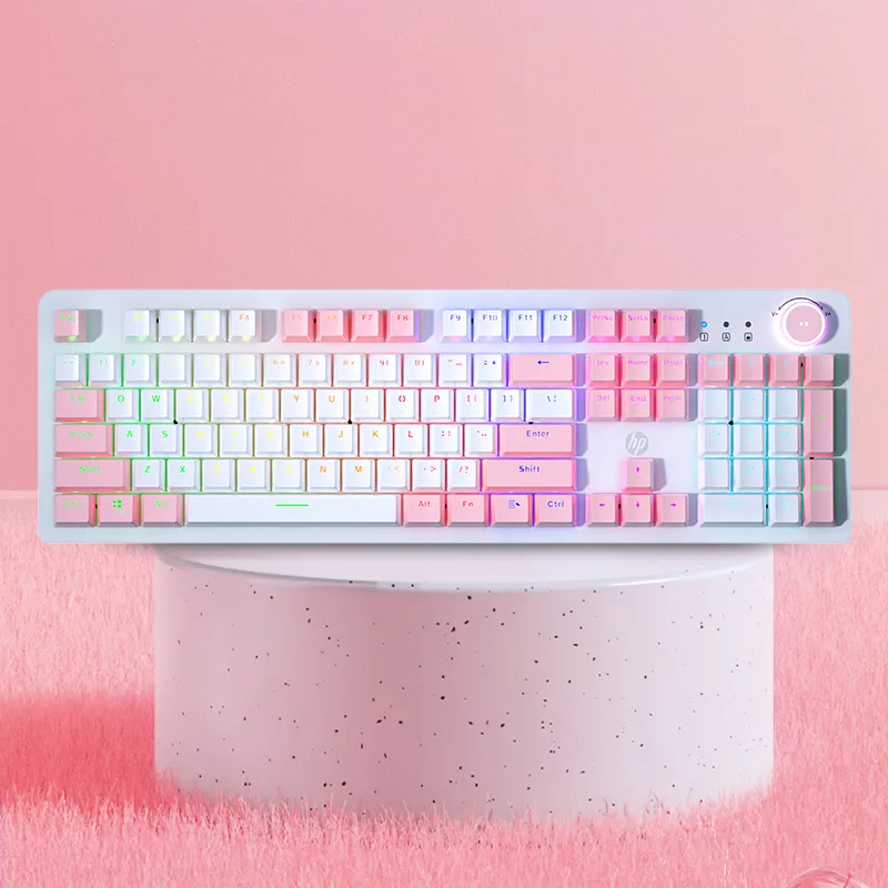 HP HUIPU K10G 블루 액시스 브라운 신발 목 104키 에너제틱 핑크 기계식 키보드 + 노와이어 마우스, RGB 조명 효과, 기계식 스위치, 탈부착 가능 키캡 키보드 & 마우스 세트 - POIZON