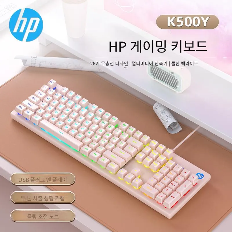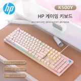 HP HUIPU K500Y 핑크 키보드 금속 혼합 원단 기계식 터치 라이트 E스포츠 게이밍 데스크탑 컴퓨터 노트북 전체 잘생김 여성 학생 파티 타이핑 오피스 홈인테리어 사용, 유선형 연결 키보드 - POIZON