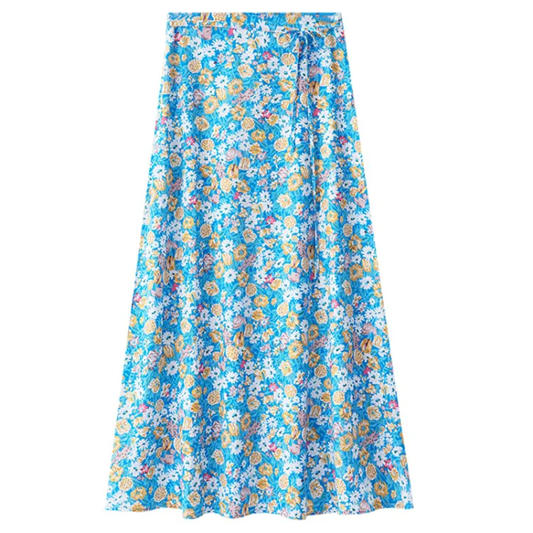 HTMEME 블루 여성 캐주얼 롱 스커트 - POIZON