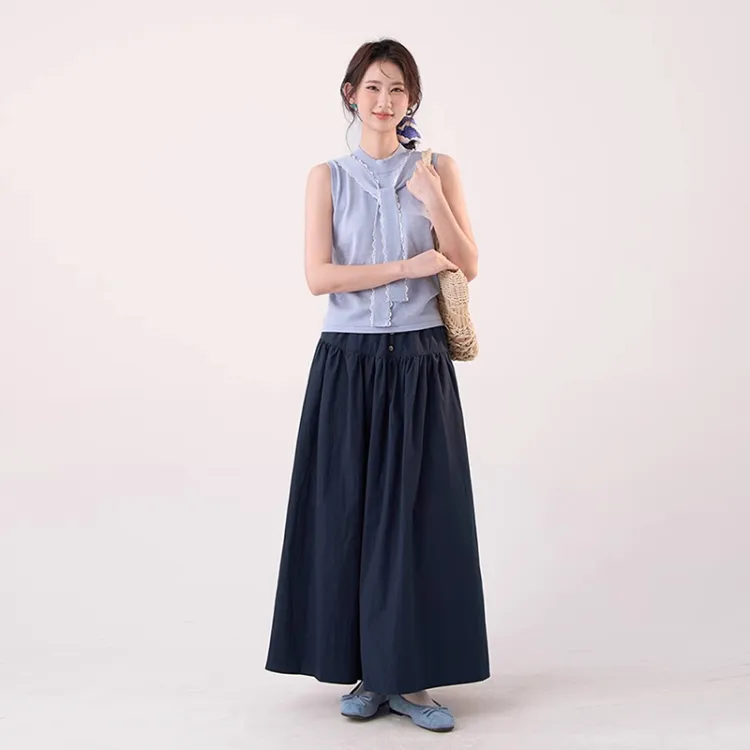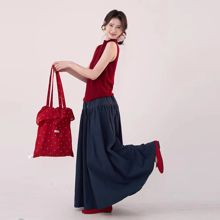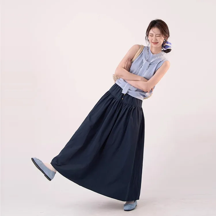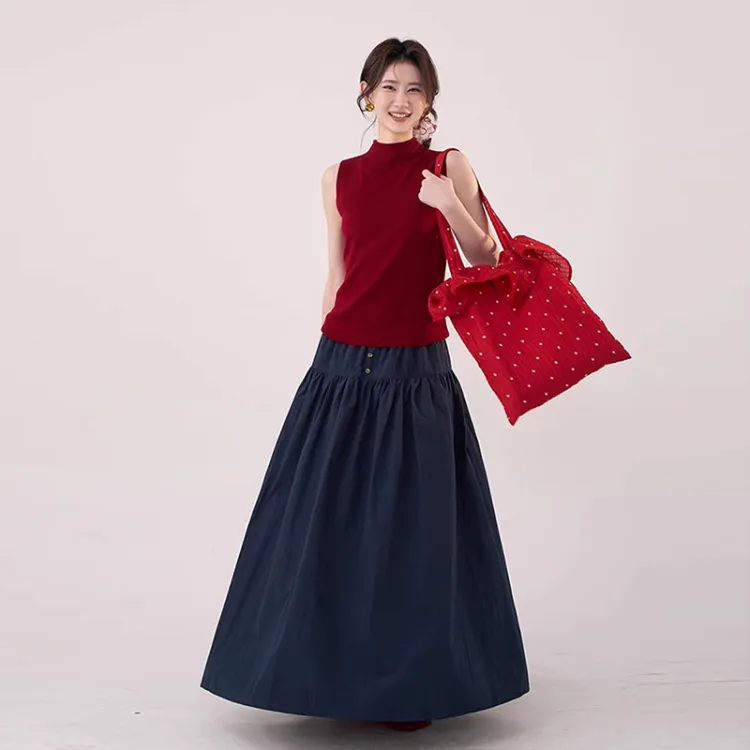 HTMEME 블랙 앤 블루 여성 캐주얼 롱 스커트 - POIZON